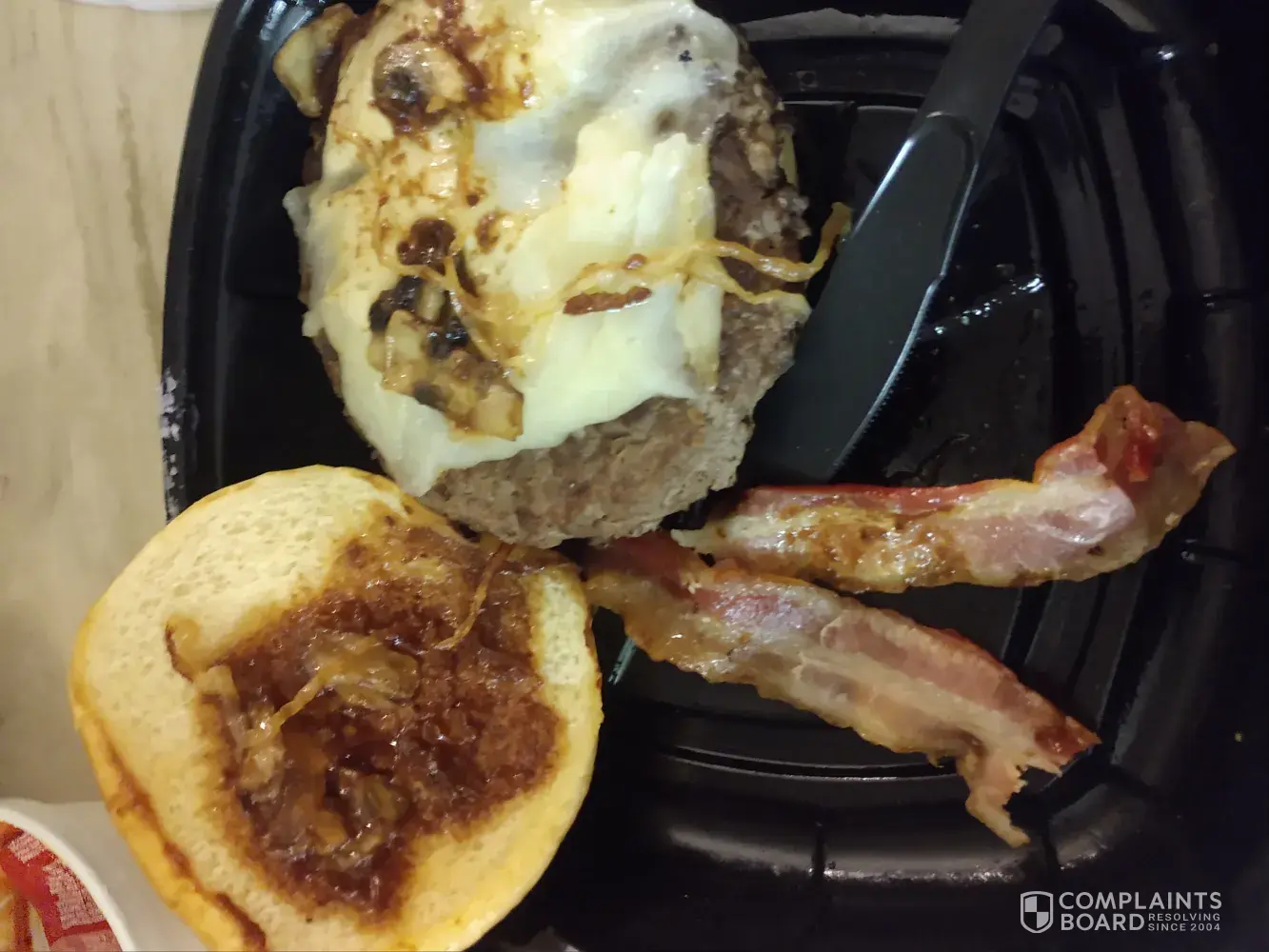 Ordered the Smokehouse burger well done, a little pink when I got it and the bacon was barely cooked. Ordered loaded fries and there was nothing on them. Ordered Mac n cheese and it was dry. The whole order was supposed to be ready in 30 minutes but I had to wait another 10 minutes at the restaurant when it wasn't busy. Everything was cold and had been sitting there for at least the 10 minutes I stood there. It's cold outside and the food doesn't sit under a lamp but about 15' from the door. Order #890115. I will not go to this restaurant again even though they share a parking lot with the hotel I frequently stay at.