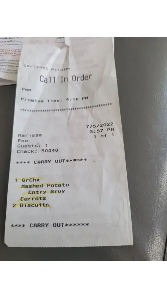 I ordered a carry out 7/5/2022