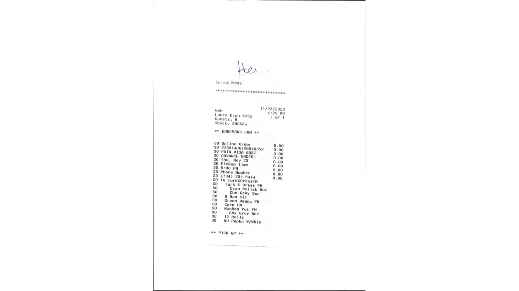 Order # [protected] The ham was NOT included with our order as stated in the product description. Laura Drouillard - 8352, Guests 6, Check 890686.