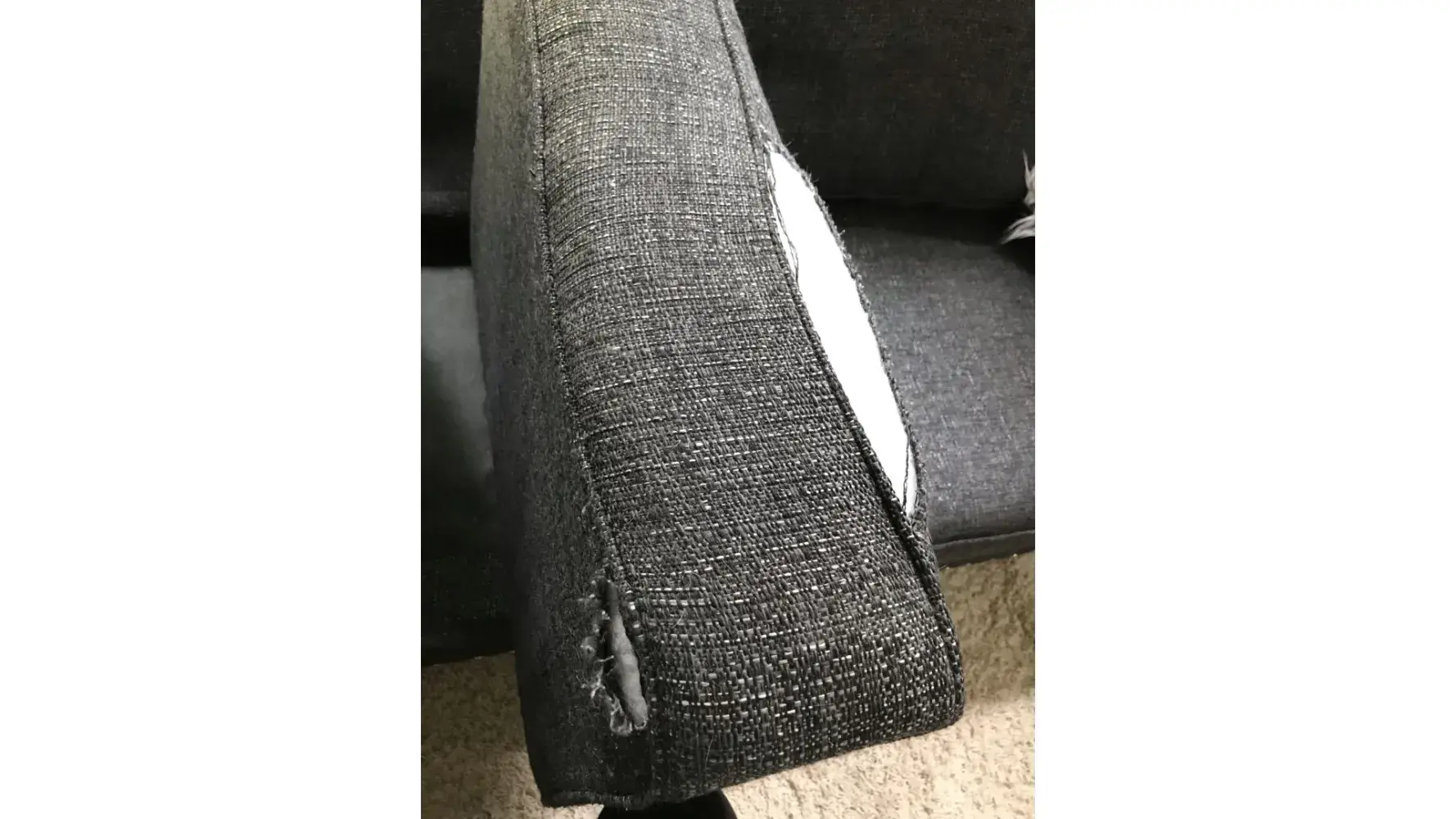 The second recliner, the arm rest frame looks like it came unhinged or bent., again because it was unknown how this happened, they will not come to look at it or see if it needs repair.