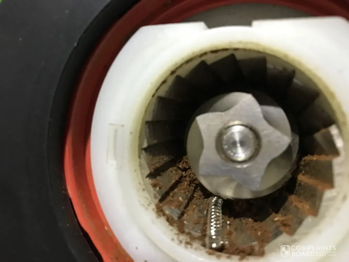 I tried to grind some coffee beans on february 27th 2024 and the grinder could not complete even 1 cup of beans and started giving an awful sound. When I checked it looked like a spring from somewhere in the grinder popped into the grinder chamber and stuck there