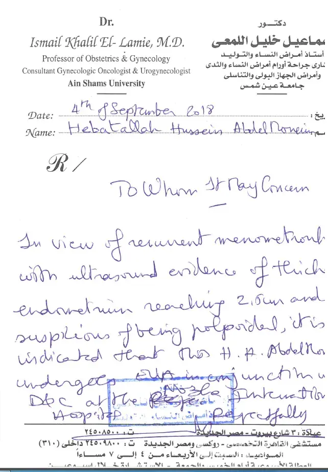 Received a rejection asking for a report from my physician that iam single/suffering from bleeding and he wants to check by an biopsy if she has thickness in endometrium. Which is already clearly staed