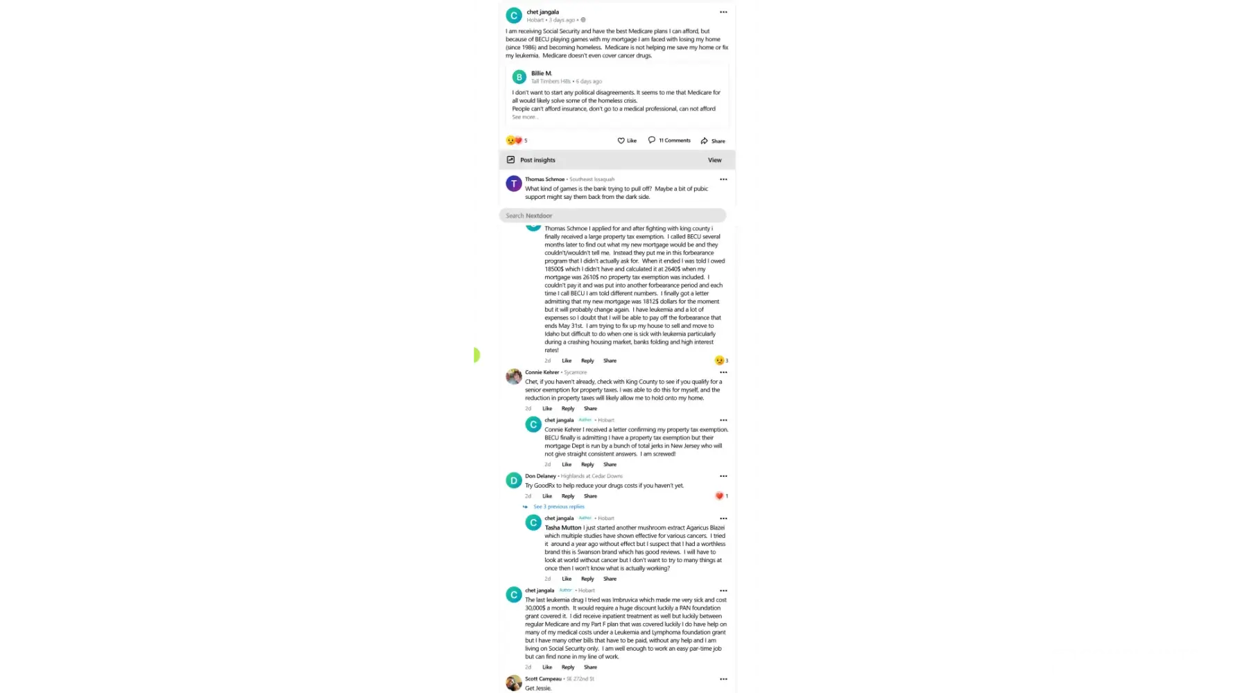 I have a property tax exemption and wanted to know my new payment. This was several months after King County approved my discount. I called BECU to find out what my new payment would be long after BECU would have received notice from King County> The phone representative couldn't tell me so he put me in this forbearance plan instead with little explanation. When the forbearance ended BECU sent me a bill for over 18,000$ and calculated my mortgage payment at 2640$ far above my real payment which would have been just over 1800$ that is one of my problems with BECU they keep changing my mortgage payment without explanation, so I don't know what it really is? I am now faced with losing my house because of BECU. I didn't want to be placed in forbearance I just wanted to know my corrected payment with my property tax exemption now it is a big mess and I face losing my house because of games/misinformation from BECU. I have CANCER and live on Social security. I could work an easy part-time job as a physician but none ever answers back to applications. I am screwed and looking at becoming homeless!