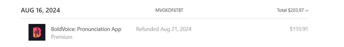 I wanted to let you know that I was contacted by BoldVoice customer service, and after I presented the evidence, they refunded the amount required.