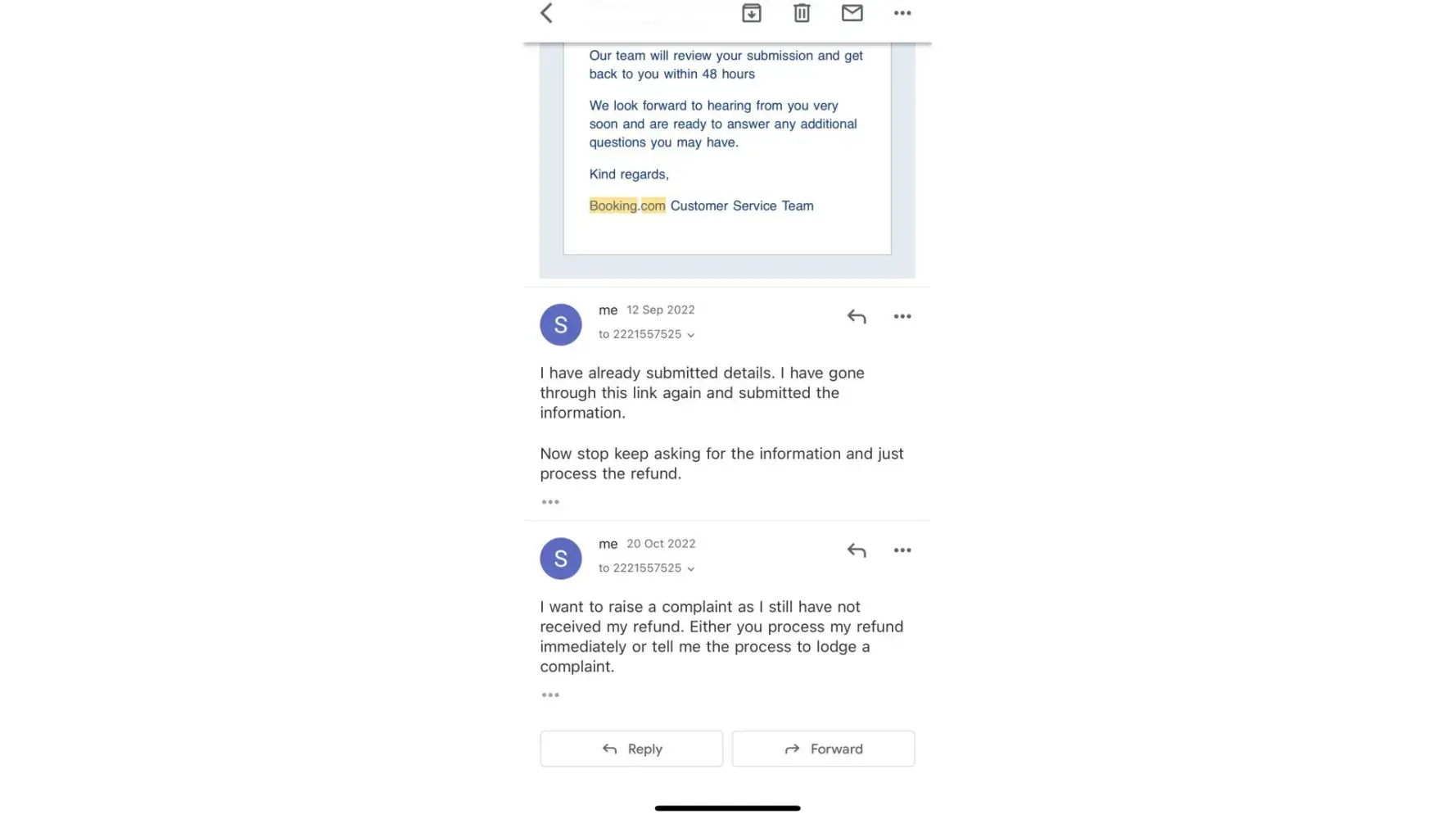 Desired outcome: Booking.com need to realise and improve their customer service, they need to acknowledge the issues and they need to refund my pay payment asap.