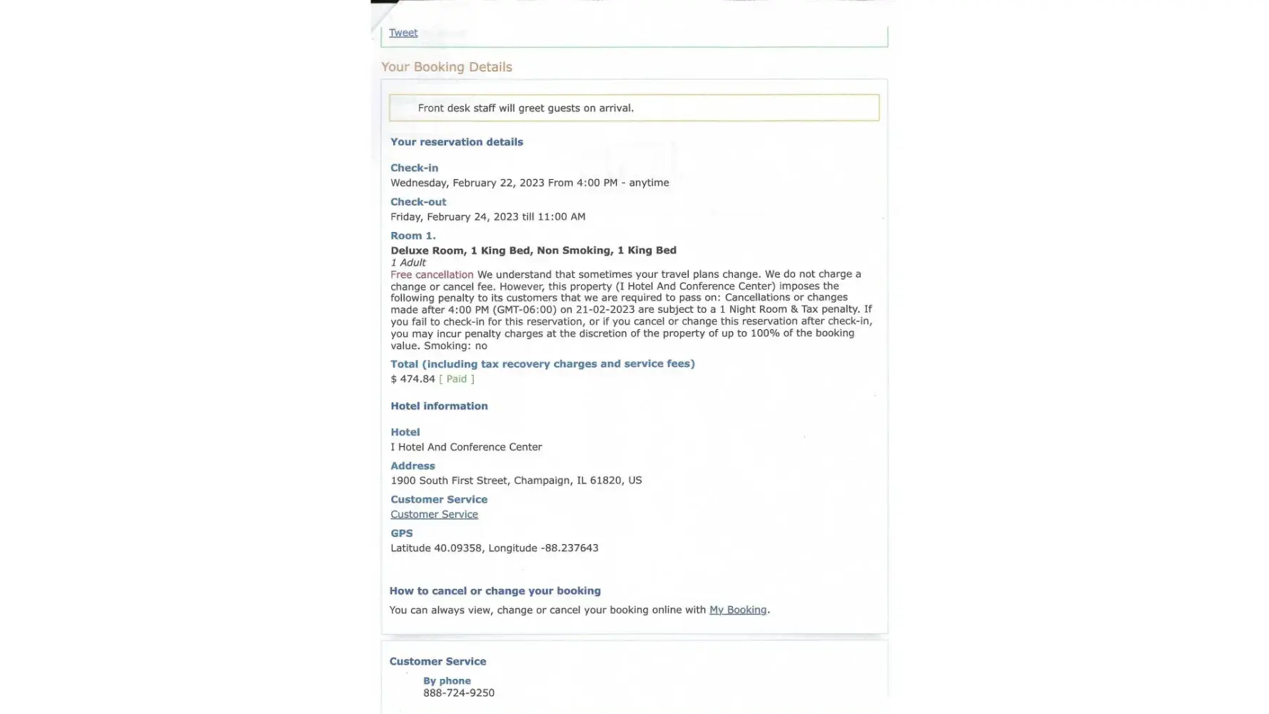 My credit card was charged 233.63 and I still had to pay Hilton Garden Inn Chicago and I have proof! Now, they stole my money, I have to wait! Booking. Com will only get my money upon arrival if I use them again! They are thieves who steal and not only do NOT give you your money but refuse ANYl compensation NO MATTER HOW “VALUED†you claim to be!I highly don’t recommend! They also promised free breakfast with reservation (that doesn’t exist) but neither does breakfast!