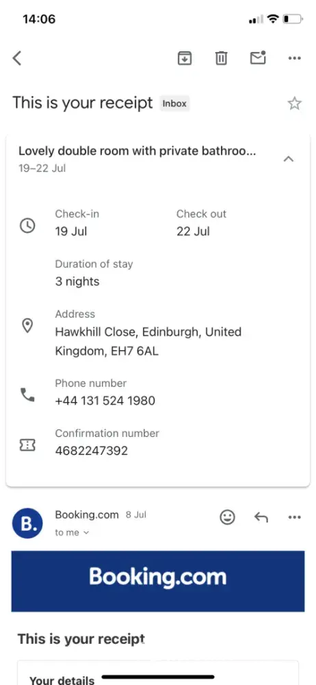 Booking.com booking reference; [protected] Pin; 1560