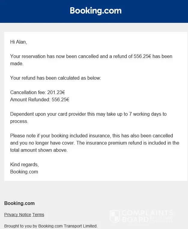 This resulted in a cancellation fee of EUR201.33, which is ridiculous.