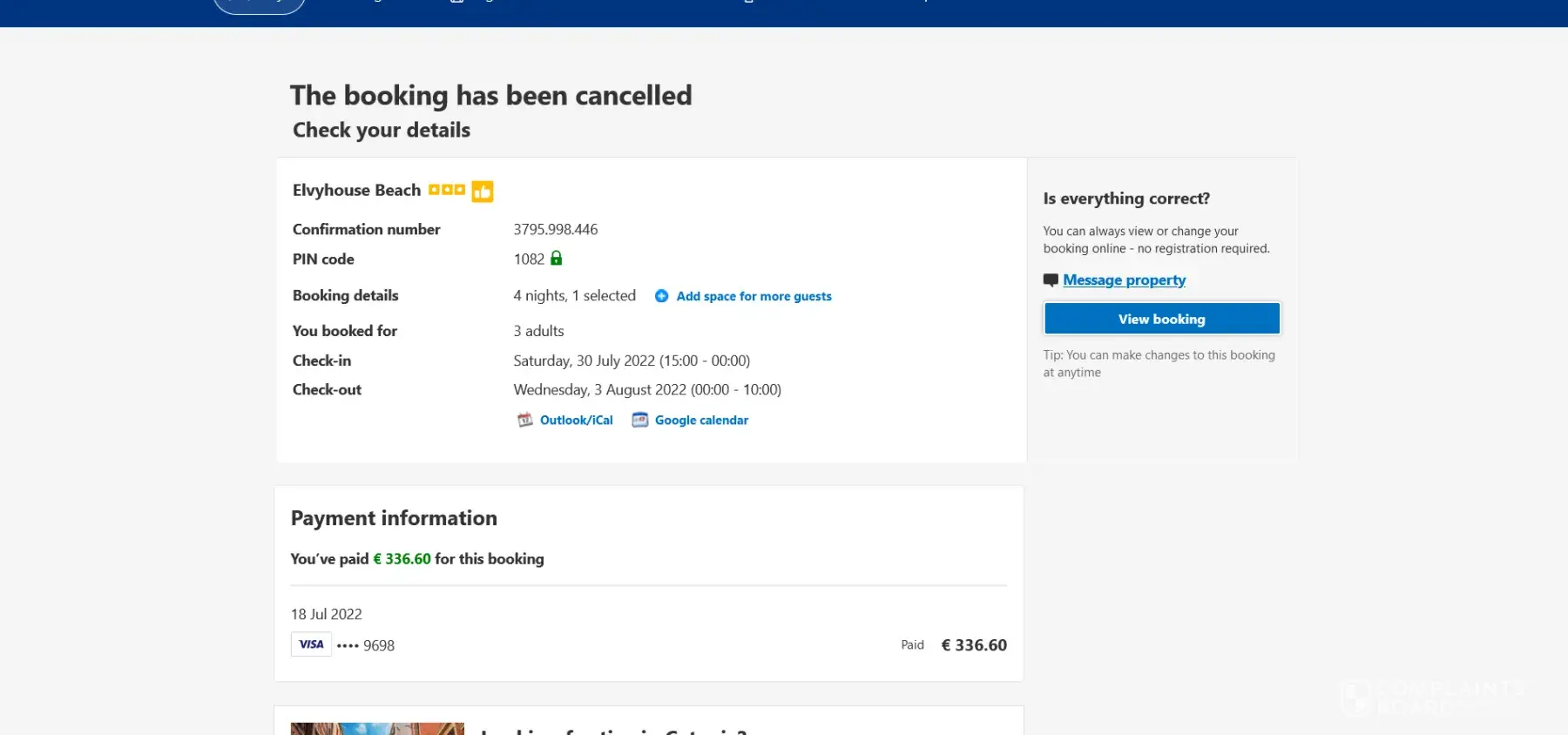 Complaint Booking No: 3489293948Address of Booking: Sillwood Terrace, BN1 2LBChecking In: 16 August 2022