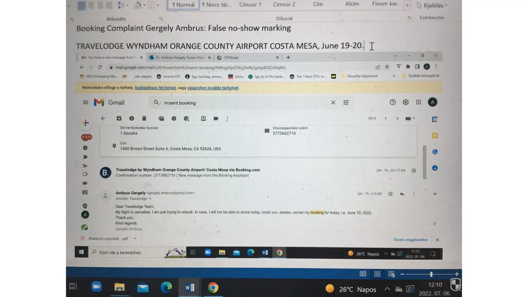 From booking.com on July 1, 2022 at 10:32:43 AM :
