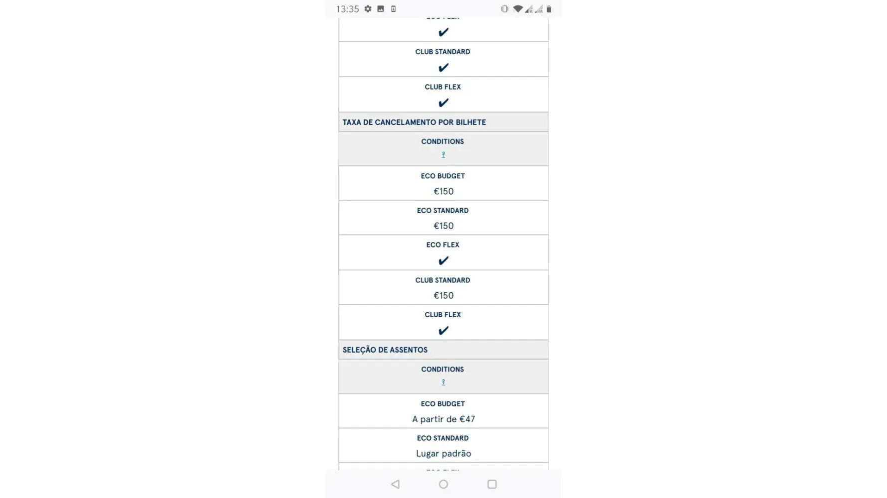 • Price (including taxes, service fees)