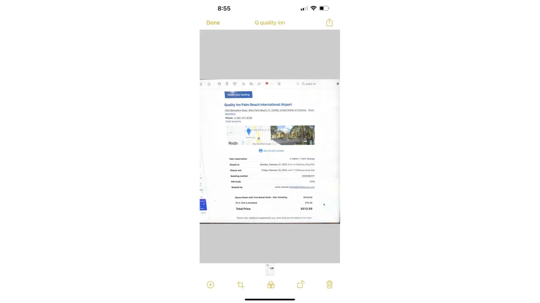 Booking.com Hotel reservation for quality inn. Canceled my hotel after paid in full