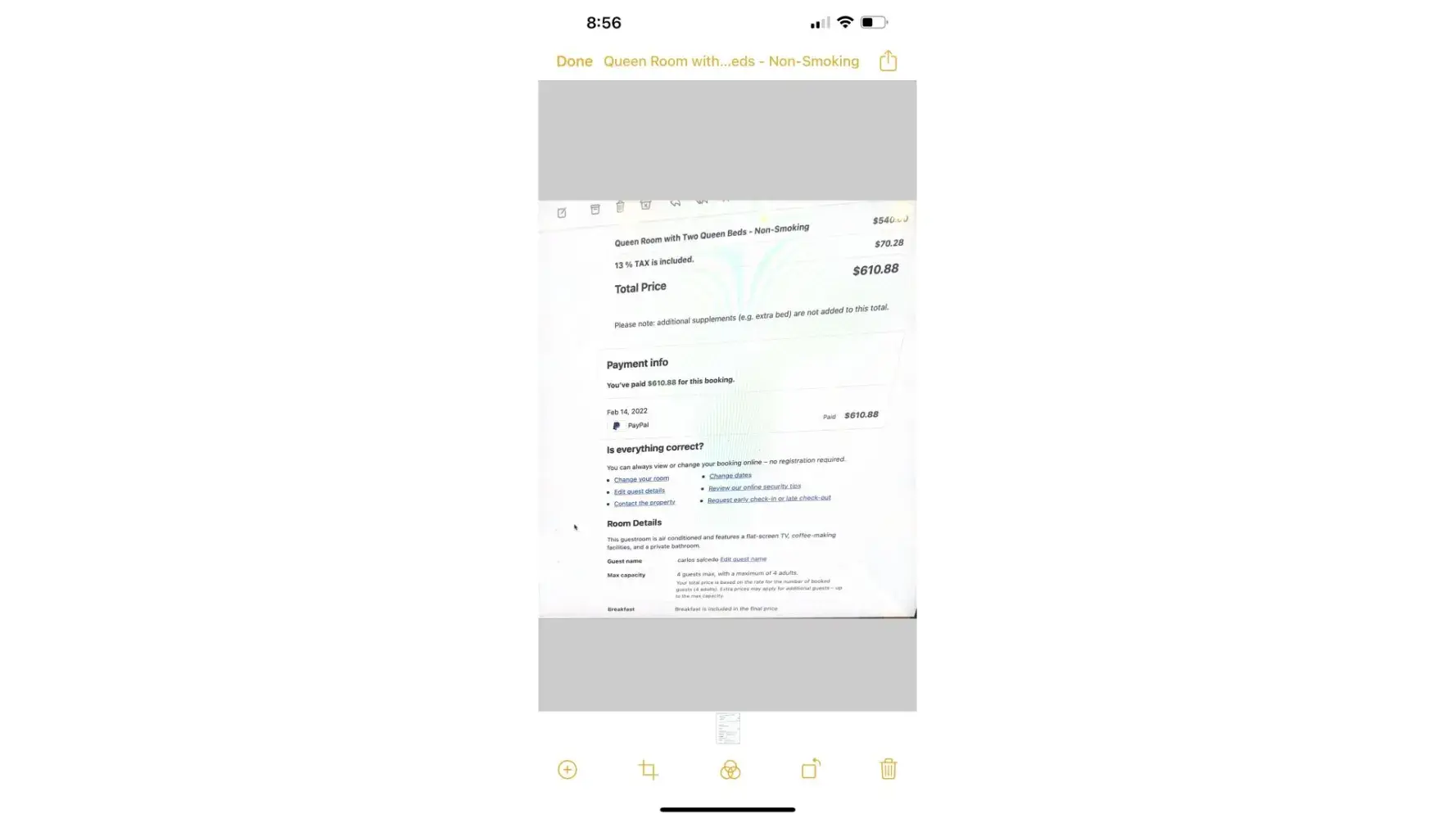 At front desk of Belagio I handed "Karla" print out of the booking.com payment.
