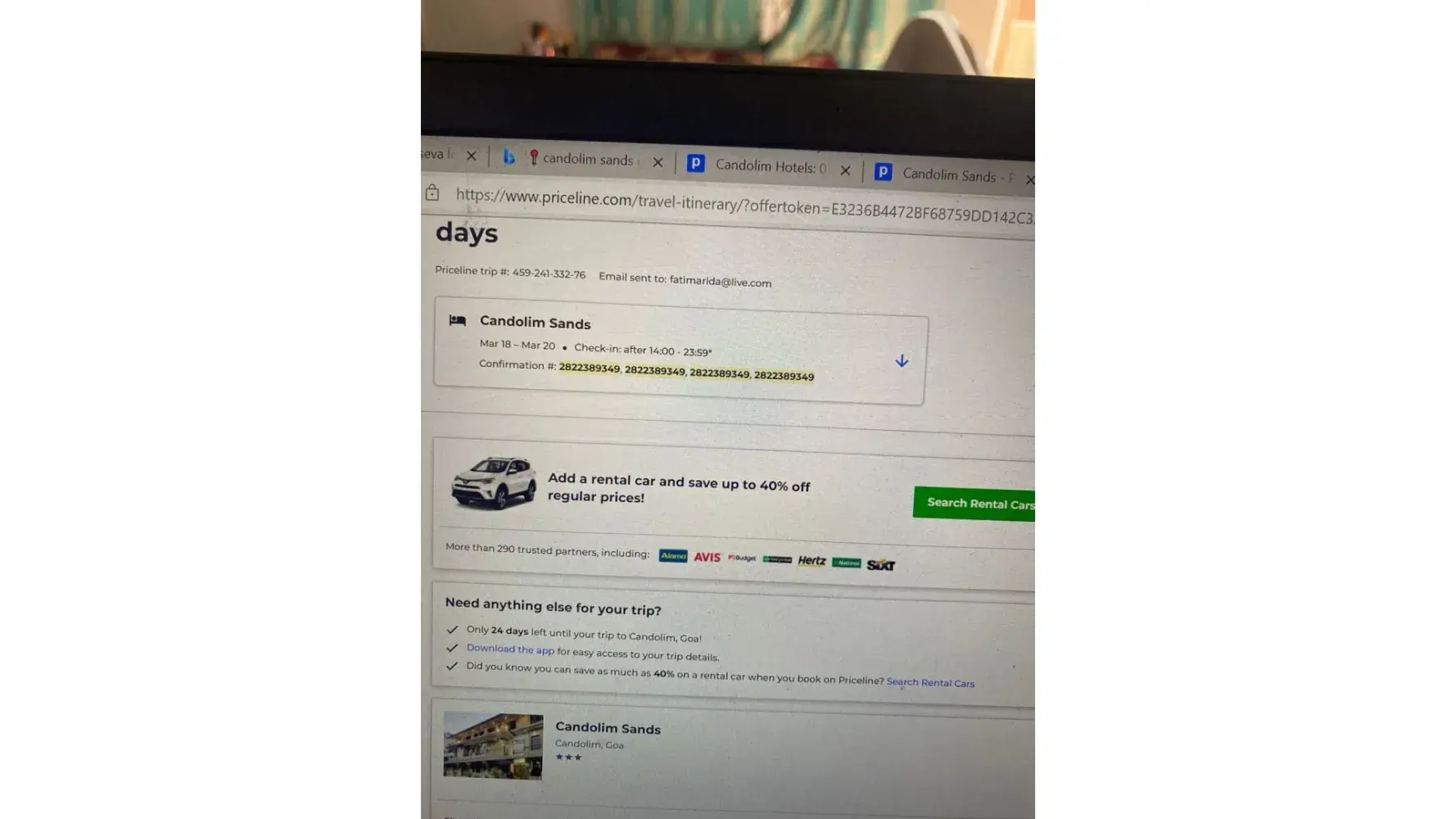 I had booked a hotel Candolim sands, Goa for 8 people - Details being: