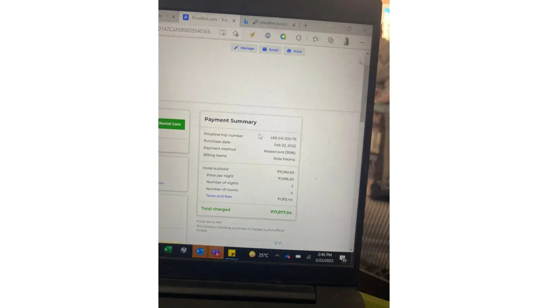 I then requested confirmation of payment for the hotel January 2022 because this year we are able to travel again and do not have to change any bookings again.