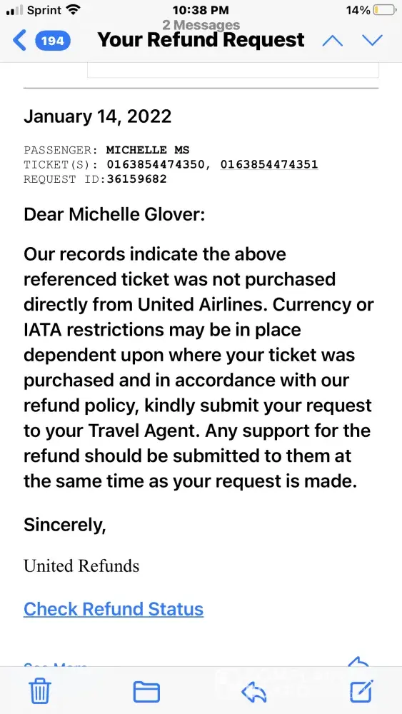 Desired outcome: Modify cancelation fee, get a refund or rebooking