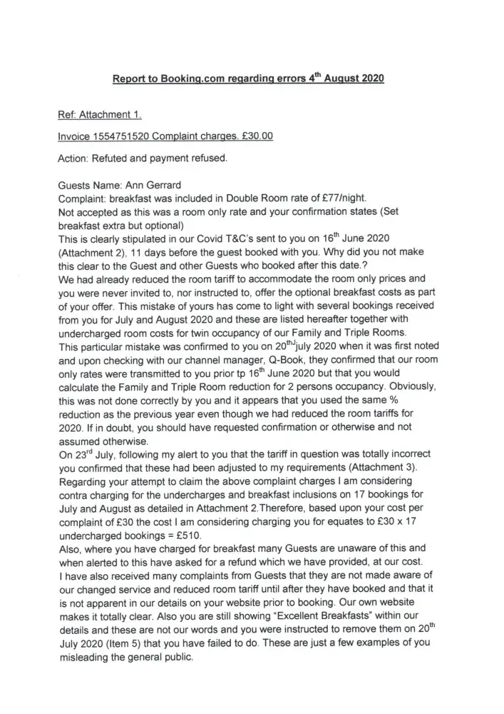 However apart from my personal opinion as a supplier to Booking.com my complaint is best described by the attached information.