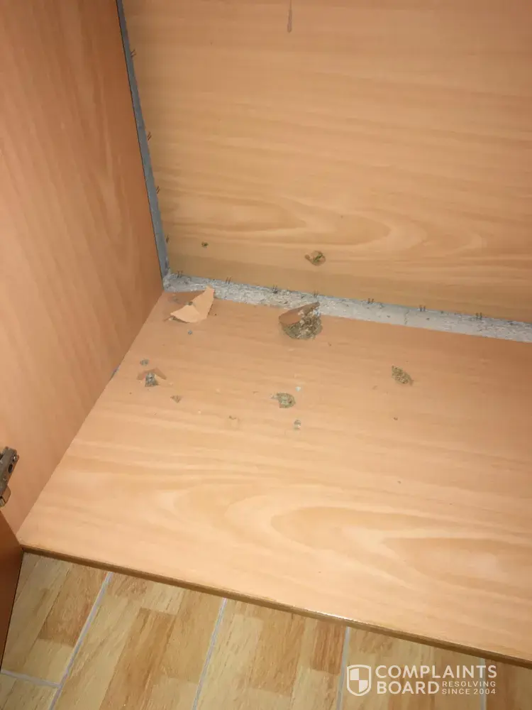 We told him about the leaking in the kitchen the gas hob and he told us someone would be around in 2hrs time nobody came as we waited. We even left the evidence of the bathroom floor flooding so he could see where it had been leaking through onto the kitchen ceiling.