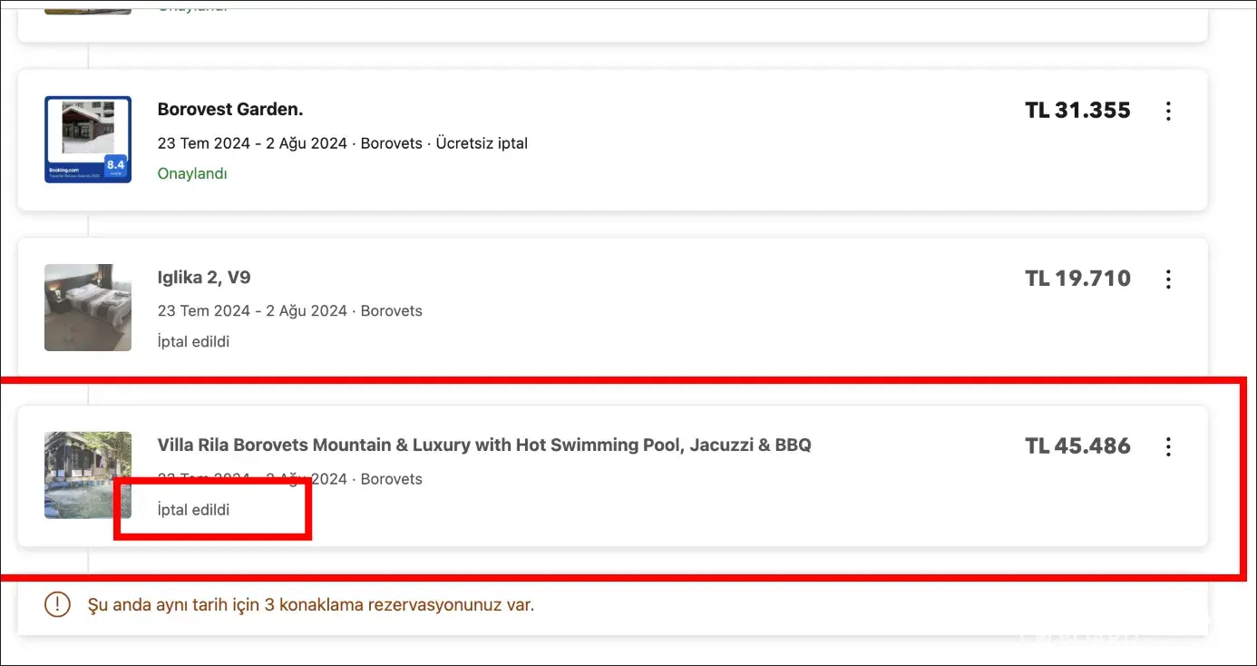 The relevant Hotel debited 45,212.00 Turkish liras from my credit card for 3000 BGN (Bulgarian leva) on September 17, 2023, and the money was NOT refunded after the cancellation.