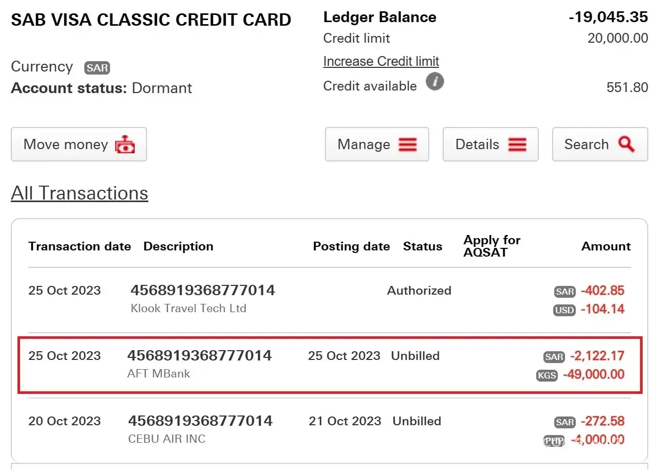 Annex-4: Credit card Statement Transaction Detail 3000 BGN = 45212 TRL exchange rate: TRL/BGN = 15.07