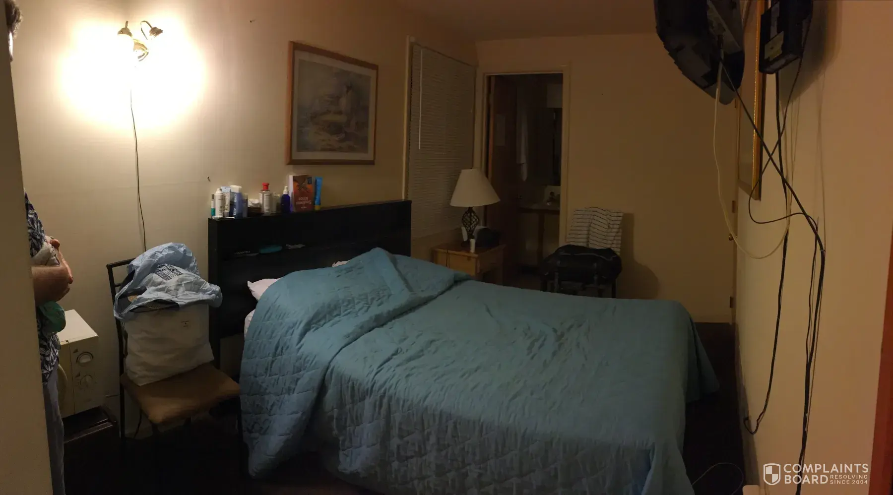 Booked one double room at Wildberry Country Lodge B&B in Newfoundland, Canada. There is no room when we arrived. the owner is drunk at that time, and gave us a spare room which is not clean at all. The owner want to charge us another time as his sister took all the money; we refused. We can hear footsteps outside the room around 2AM, the footsteps is not from the hallway, but outside the room. Contacted booking.com; however, there is no feedback at all. Booking.com is not doing anything to help. I took photo about the room. I would like to request a refund or partial refund as this is not the room I booked.