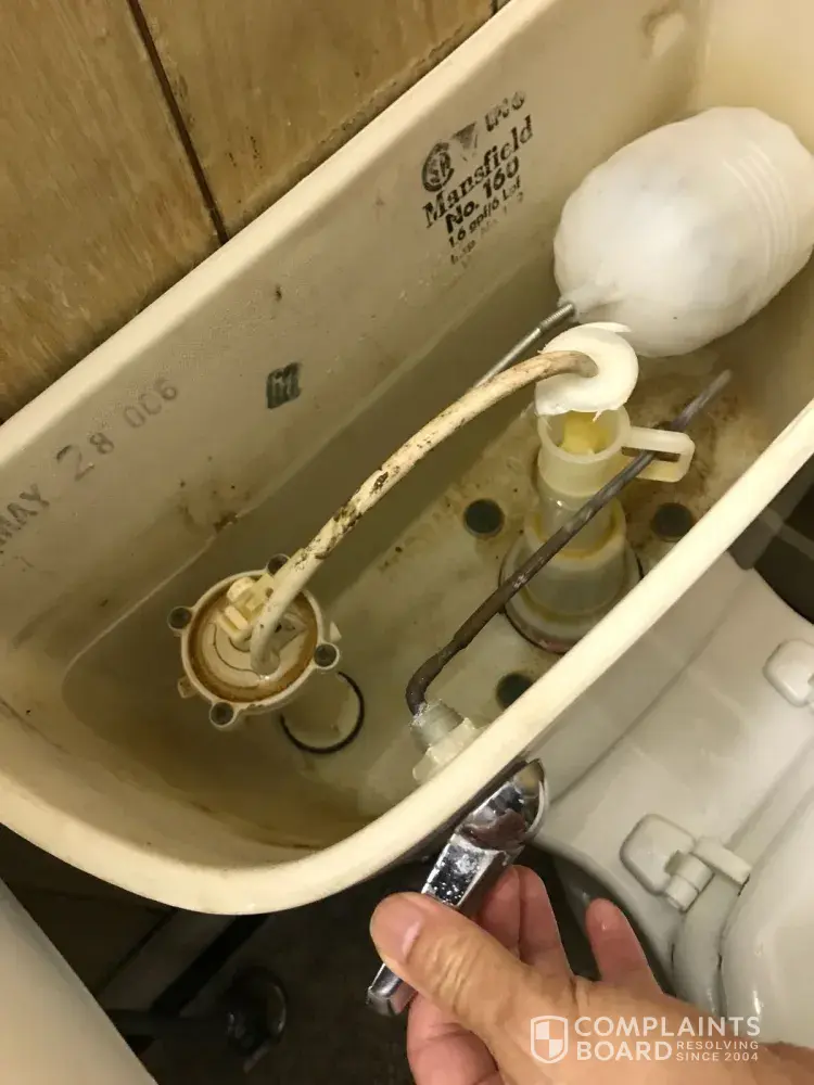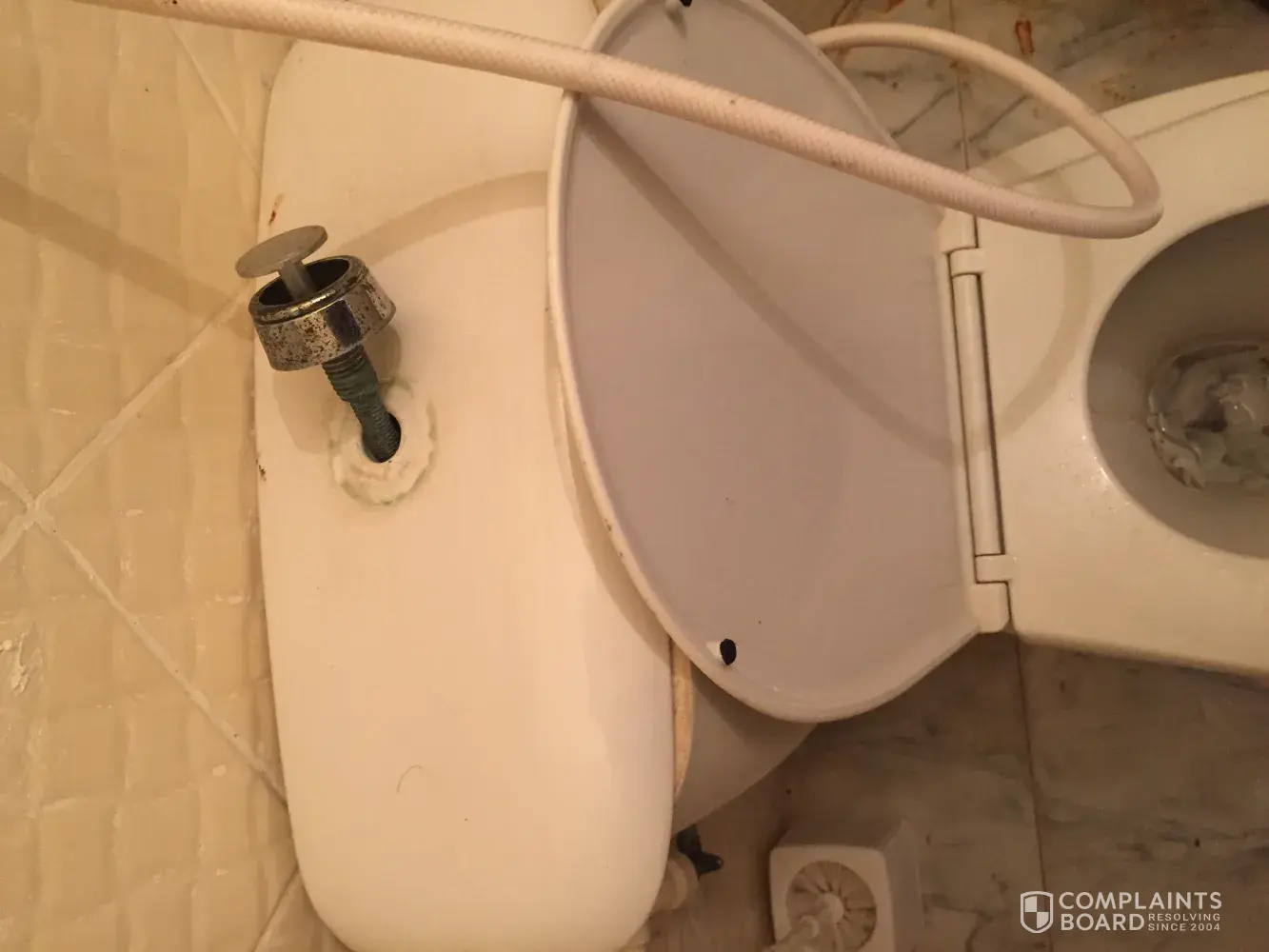 • Toilet in the 2-person unit did not work, the handle was connected inside with a thin rod and not a chain, hence, the toilet handle could not be turned to flush the toilet. The bucket in the bathroom used to flush the toilet was cracked. This posted a serious health concern.