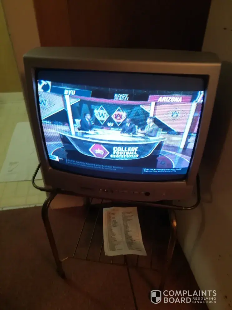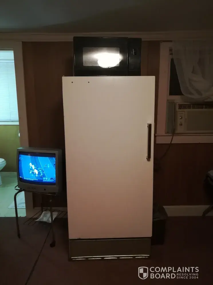 • Appliances in the 4-person unit were outdated. TV was a small 19" obsolete box typed TV on a small cart. Refrigerator and microwave were outdated. Air conditioner was old and not efficient. Air conditioner was not on upon check-in and the unit smelled musty.