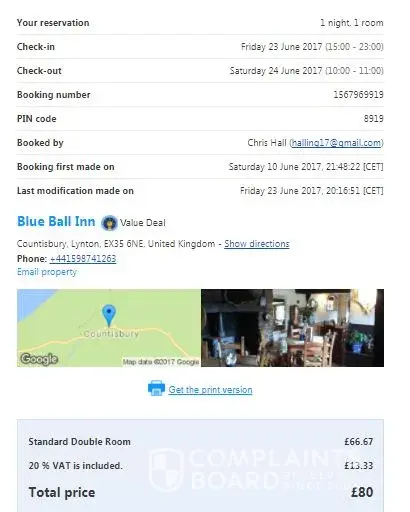 The Manager charged us the sum of £80 incl VAT for one night – therefore we would appreciate a refund as a gesture of goodwill on your part.