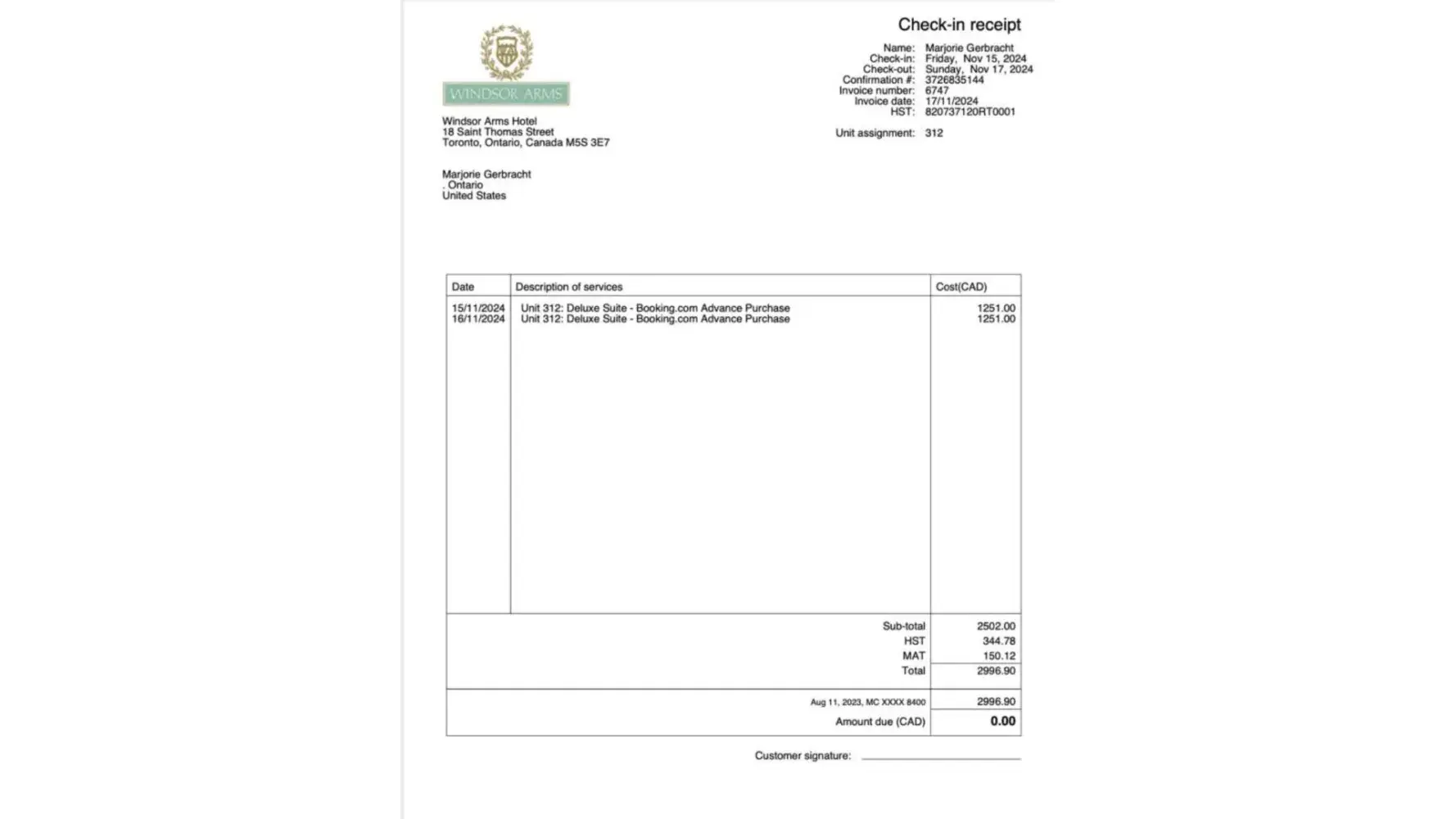 (1) On Thursday evening, August 10th, 2023 I booked the Renovated Guest Suite Near the Lake and High Park in Toronto, CA from November 15-17th, 2024 through Booking.com. (My son had secured tickets to a Taylor Swift concert in that city.) I was charged $485.37 CAD on my credit card.