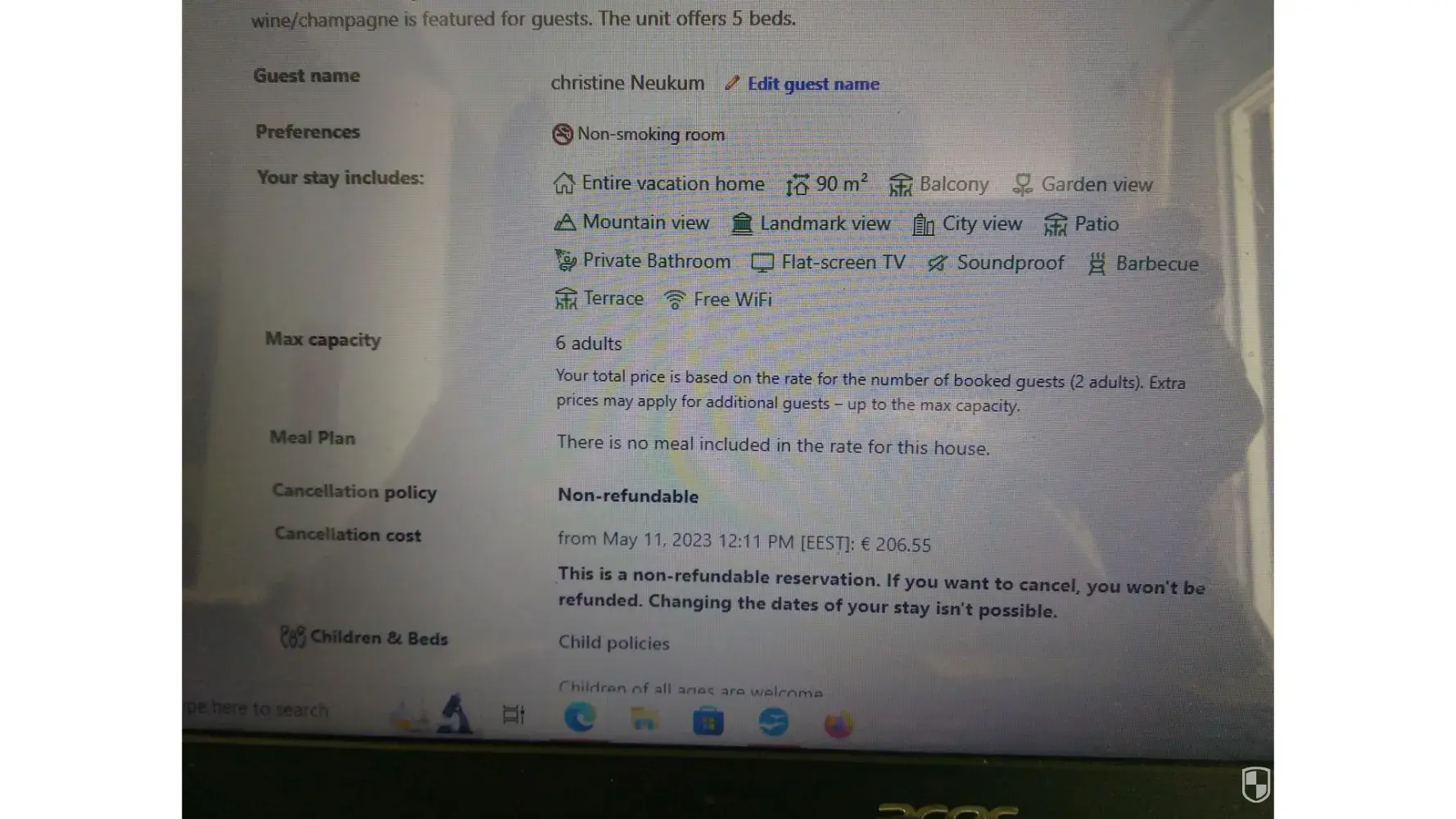 Desired outcome: 1. return of my money 2. 2 nights (free) within April or May 2024 (mountain area with snow that for not before and before high season next year) at the accommodation WITH balcony and view and bedrooms with windows.