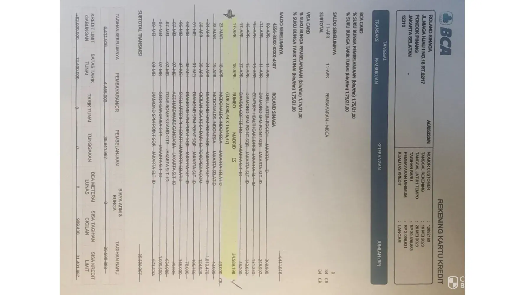 REFUND amounting to IDR 34,589,198 as shown Credit Card statement of BCA (Bank Central Asia)