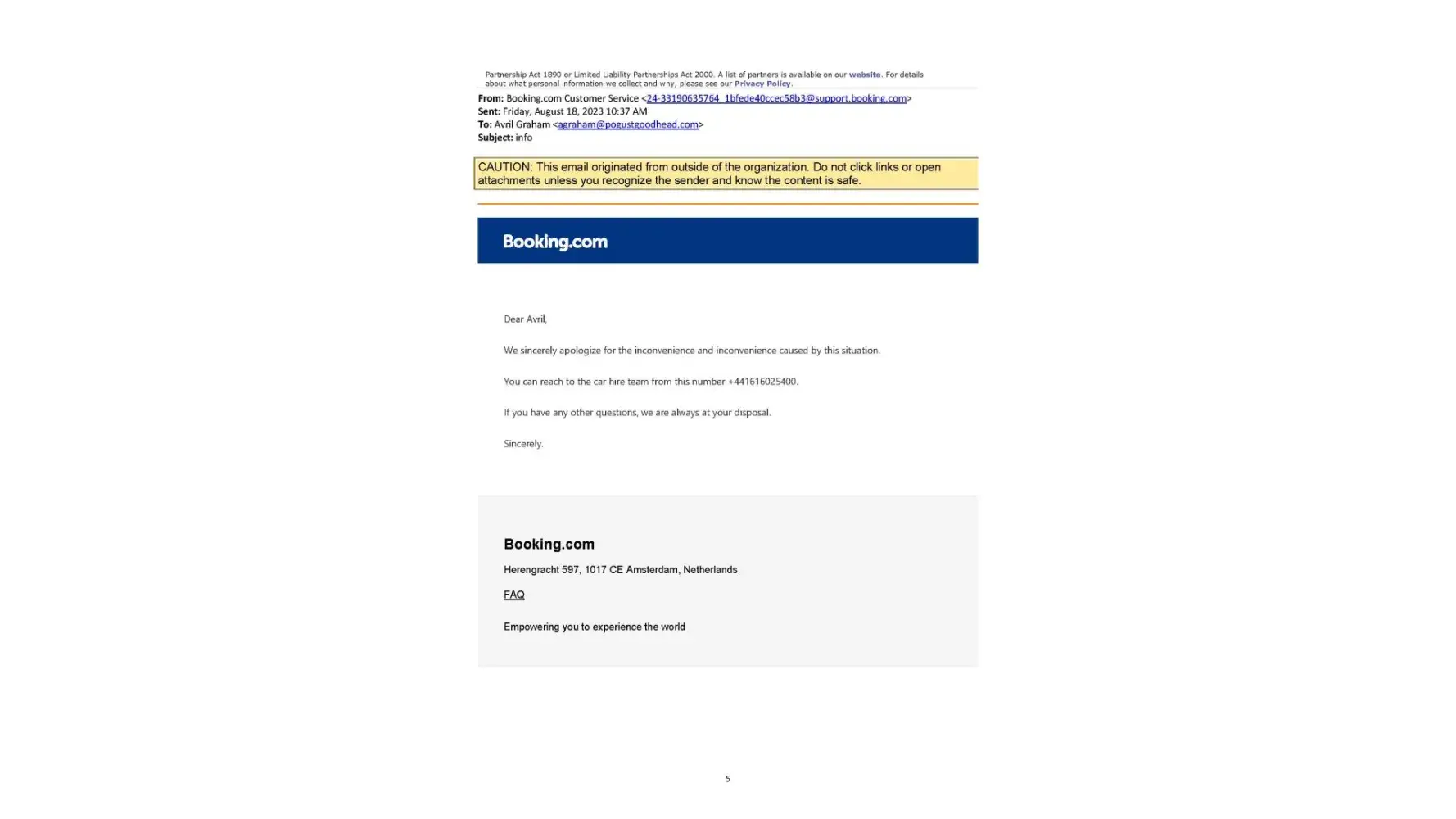 (3) I received another e-mail from the rental property roughly an hour later (again Ankur) saying there was a "glitch" on the Booking.com website and the reservation was cancelled.