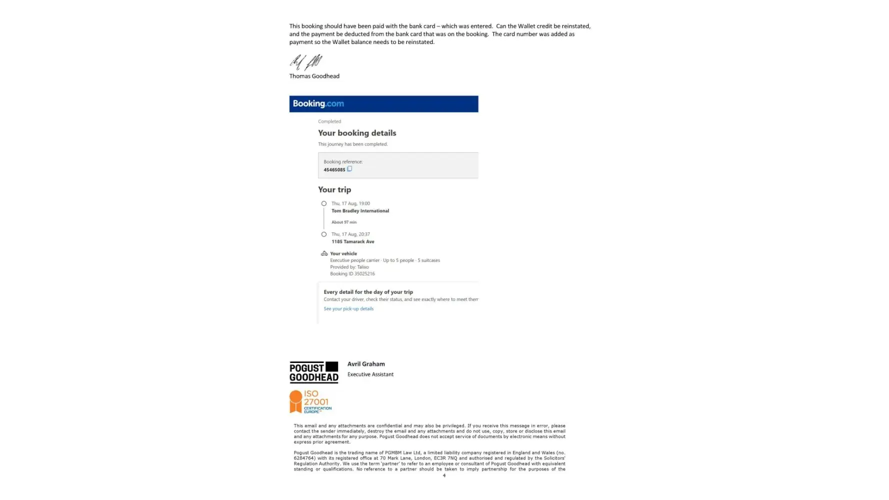 Taxi date: 17 August at 19.00 from Tom Bradley Airport to Tamarack Ave. Taxi provider, Talixo. Booking ID [protected]. Booking ref: [protected]