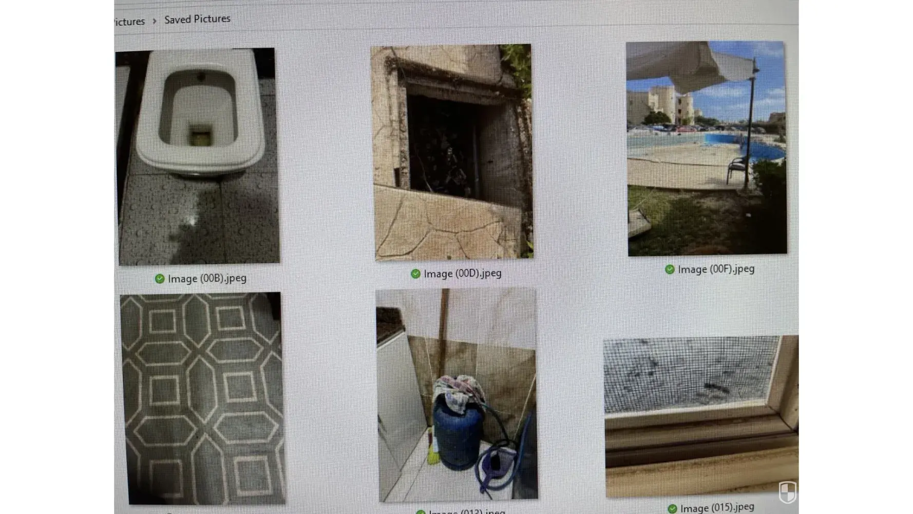 I am attaching pictures of the difference between what was offered and booked and the actual condition I found there.
