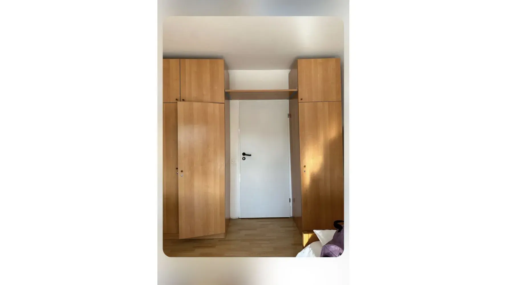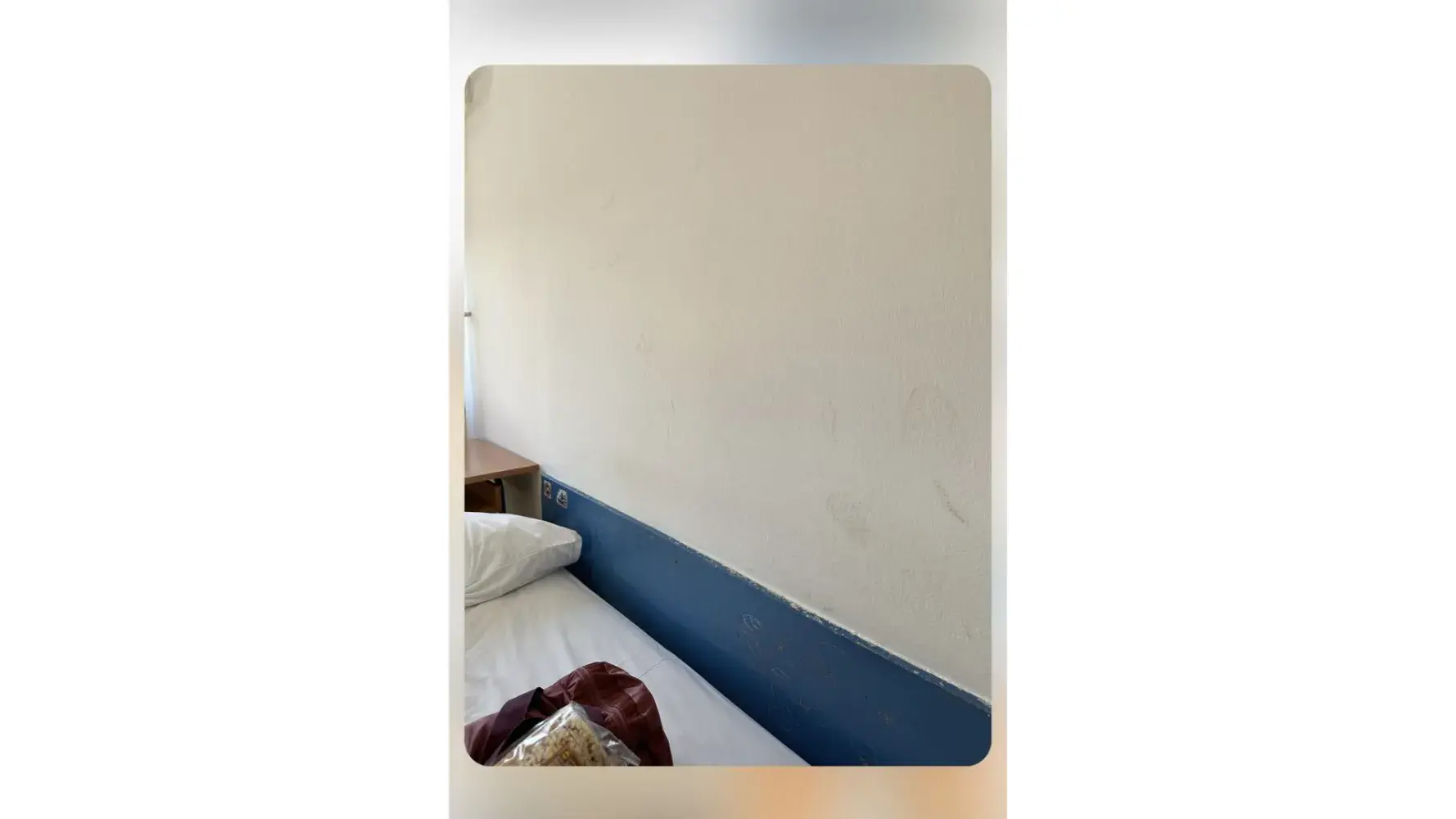 The bedroom was so small that there were only around 400 millimetres between it and the walls on either side. There were about 600 millimetres between the foot of the bed and the cheaply made wardrobes.