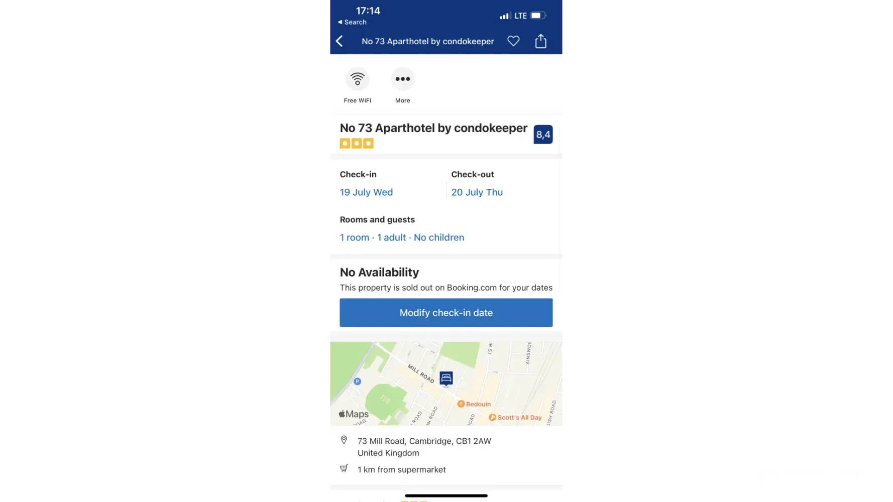 When I look up my reservations on the Booking App, I see the following message: