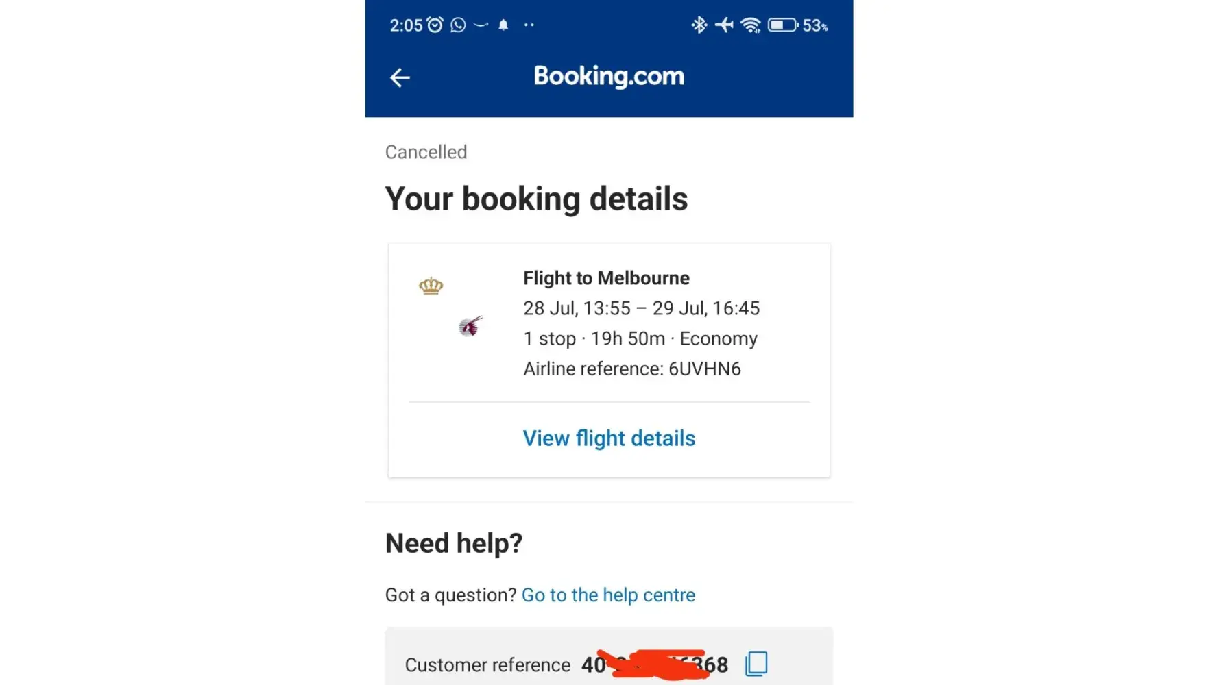 They told me to go contact the airline and get the refund myself. I managed to get in touch with them and they were shocked saying it was their duty to apply for refund on a system they use. They told me Booking.com or Gotogate has never contacted them so my flight was still active on their system. This meant that in 2 days the flight would take off and I would not have cancelled flight even though I told Booking.com and Gotogate 2 months ago that I wanted to cancel the flight.