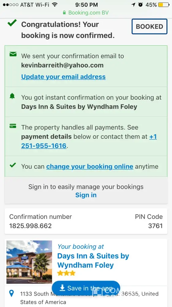Just booked a room at Days inn and Suites by Wyndham in Foley Alabama on Friday for this upcoming holiday weekend and the site software defaulted back to the previous weekend without my knowledge or consent. We did not realize until we got a email asking us how our stay was. After calling the main customer service number w booking.com twice they've charged my credit card over a hundred dollars for a room that we did not stay in not have never been to and they will not change the dates, offer any solution asbin credit towards another room even if we pay the difference! I spoke to Lori the first time and Emmanuel the second. He refused to give me the corporate contact for the company and pretended to own booking.com. He was extremely rude, dismissive, and unprofessional and did not offer any solutions. He I formed me numerous time I needed to go bc he had other customers waiting to be "helped" I WILL NEVER USE THIS SITE AGAIN EVER AND IM REPORTING TO THE STATE ATTORNEY GENERAL AND BBB!