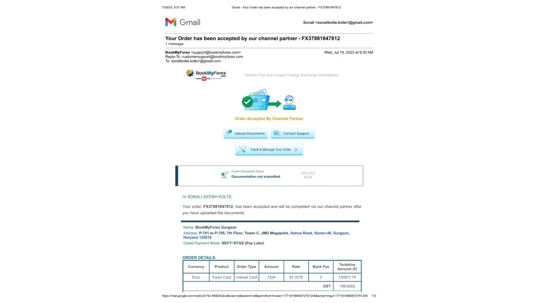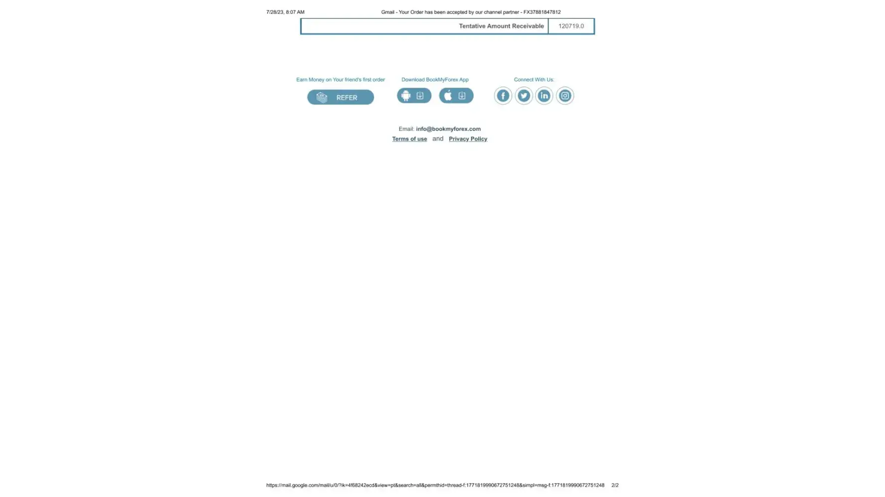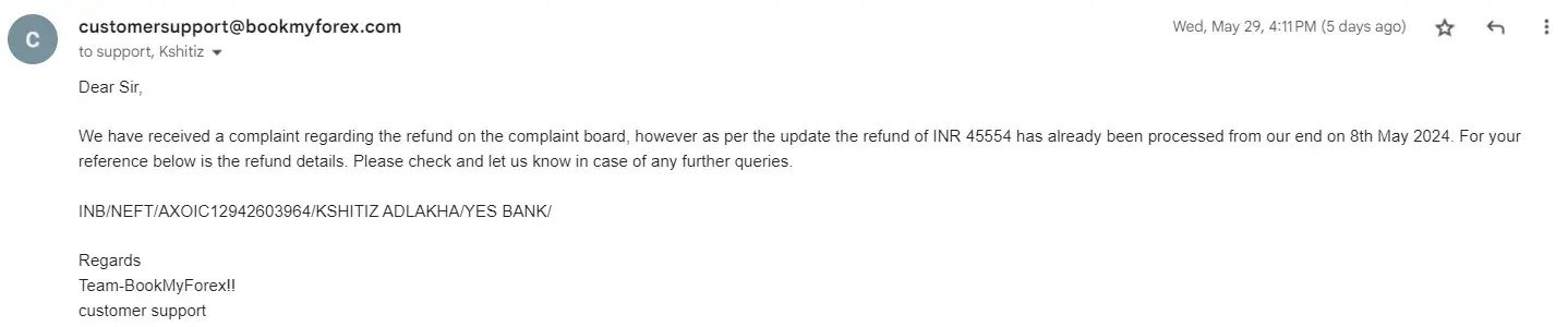 Non refund of Bookmyforex Order ID - FX37146876836