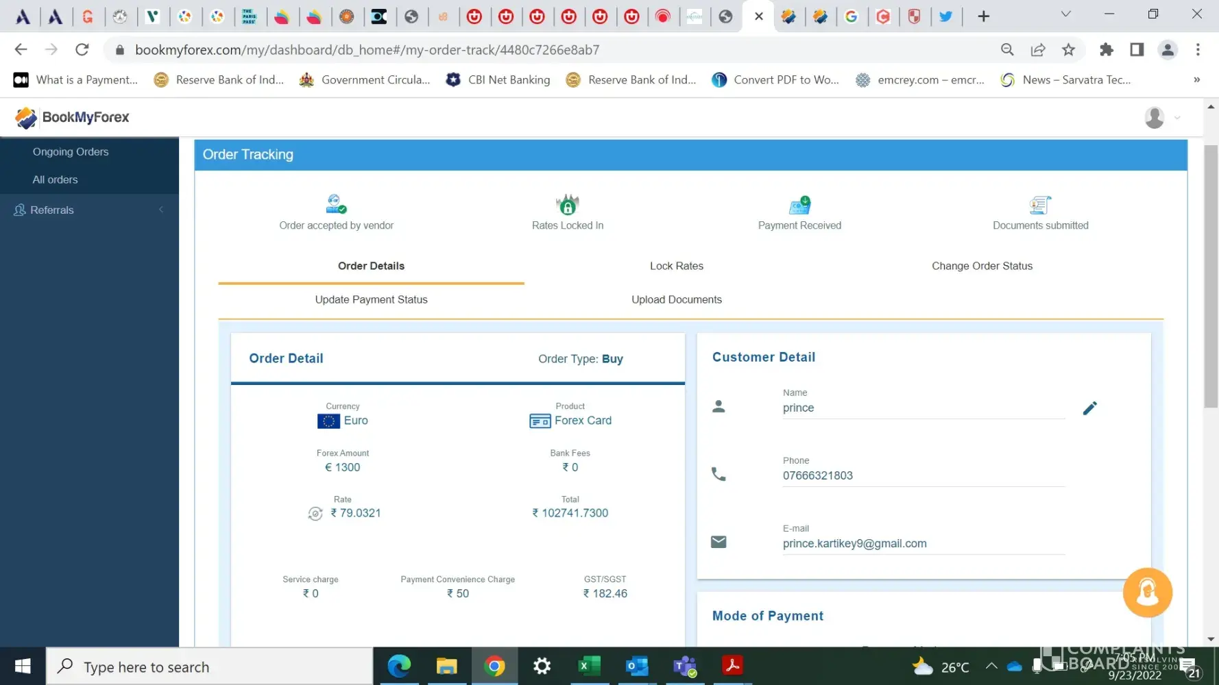 I have placed the above order (FX27925526009) on 21-09-2022 for loading 1300 Euros and till now I have not got any response from the Bookmyforex team despite writing multiple mails to them for follow-up.