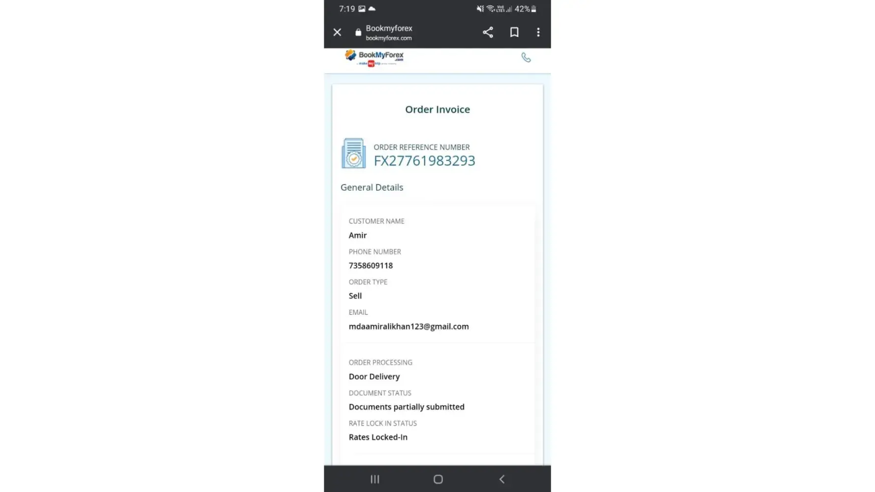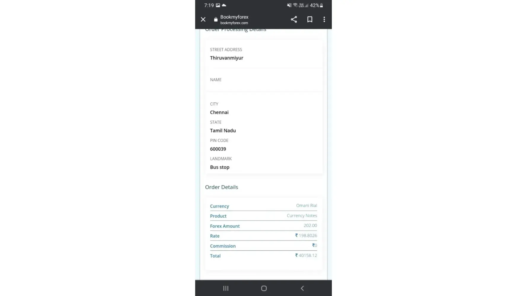 I'm currently to omar rial for exchange notes cash its complete with complete payment Rs-798.71 I call ro ompany not pick or distribute off call & whatapps if wait came delivery couldn't bookmyforex my can cancel to order report in complete I'm wait long term per month it not refund I think scams, fraud I but complaint report with share...