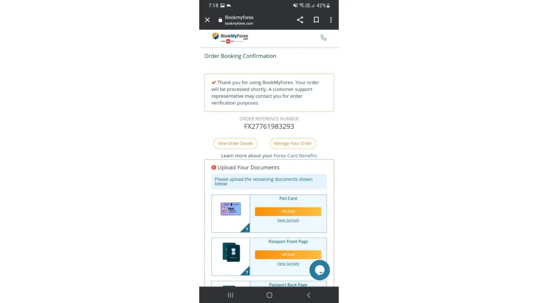 Regarding Non completion of Forex Card Load Order FX27925526009