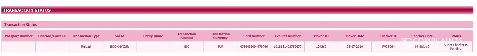 This complaint is regarding the Forex card - order FX161342311619.