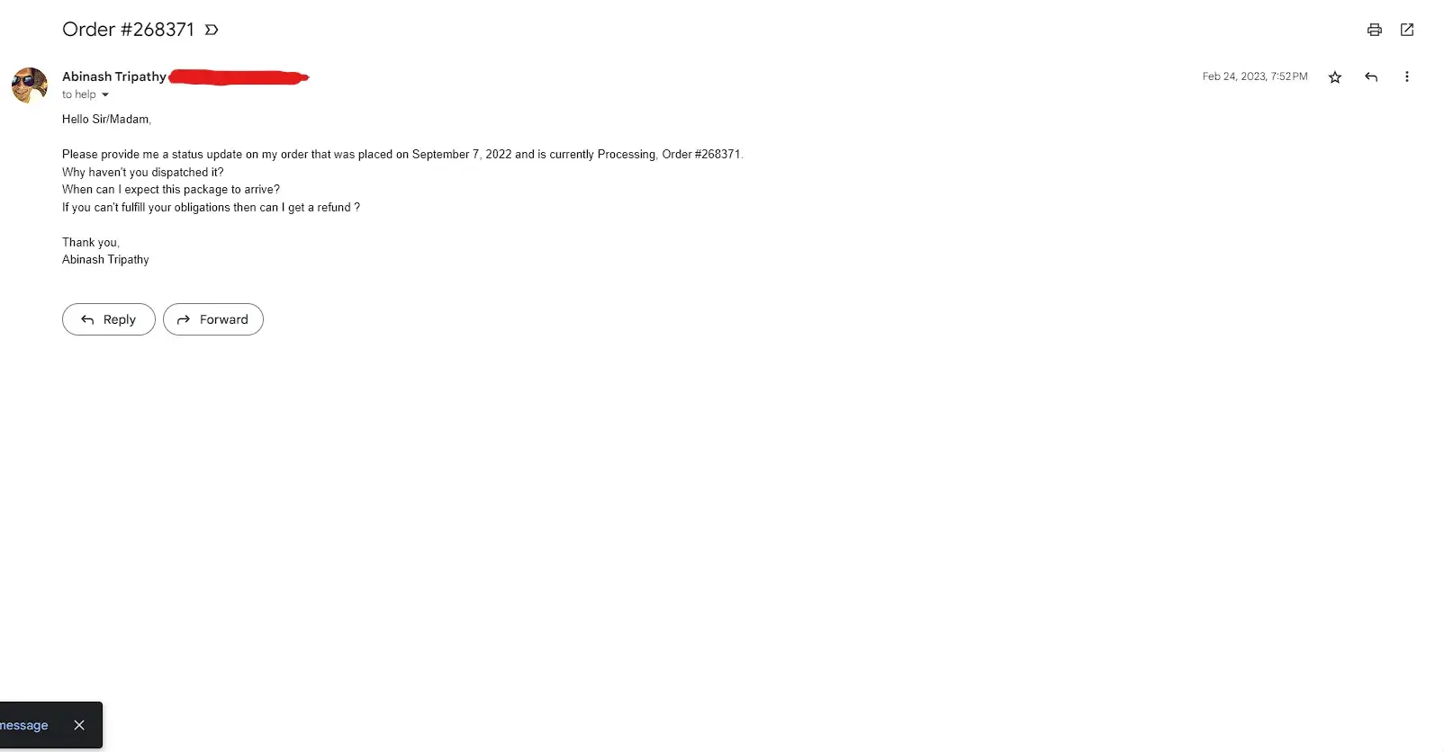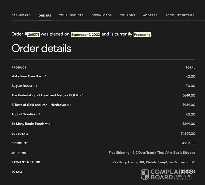 I ordered a "make your own book box" from their website in September 7, 2022. Paid in full for the product. Till today 20-03-2023 they have not delivered the books to me. They do not even reply to my emails asking about the status of this order. This is what I get on their website: Order #268371 was placed on September 7, 2022 and is currently Processing.