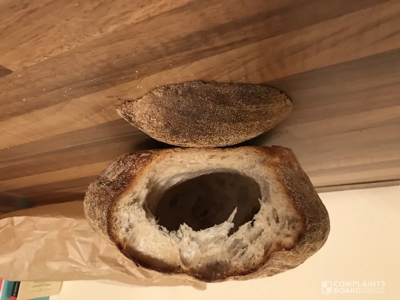 Having bought one of your loaves today Sunday 6th January 2019, I was absolutely amazed when cutting in it to find there was no actual bread in it, just a large hole & so naturally my husband was fuming as it was for his Breakfast and lunch tomorrow. He has to set off to York at 5am there will be no time to exchange the product and as the shop is closed with no possibility of getting anything else or exchanging the loaf. £2.00 on fresh air, extremely disappointed, will return for exchange tomorrow but a real waste of my time and a very hungry husband.