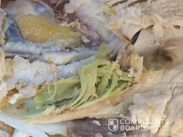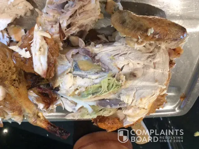 Chicken purchased Booth Ripon on 18 June 2017. Cooked 19 June and when carved extensive green discolouration of meat seen. Presumably green muscle disease as found in cheap broiler chickens. All the meat plus packaging was returned to Booths on 20th and a replacement and refund recieved. I spoke to manager Jonny Sime and explained that I was less concerned about a replacement than to understand how Booths could sell such meat under with an expensive free range label. I asked to be informed about the investigation of this matter. He assured me this would happen but I have had heard nothing from Booths. I think this is a very important matter.