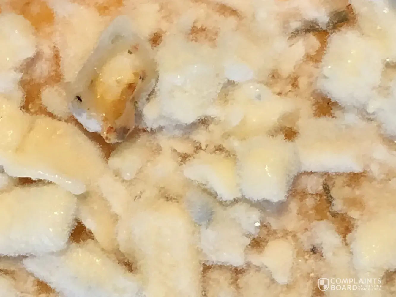 Please see attached the photos of a product that I bought which is within date and is going mouldy and is inedible. I only noticed when I was preparing tea and am now having to go out and get something else. I am most disappointed as I was really looking forward to having it. Please refund me the cost. Thanks.