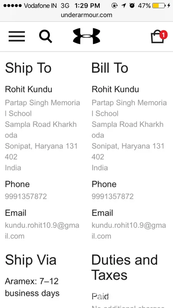 Respected Chairperson I ordered a pair of shoes from Under Armour on 23rd April 2017. But till now I don't get any useful information.Comapny provide me a tracking number of Aramex and then I contact to Aramex, they told me that yours product is still in New York and the company will solve yours problem. Will you please help to find my product and tell me whenever it will be deliver.