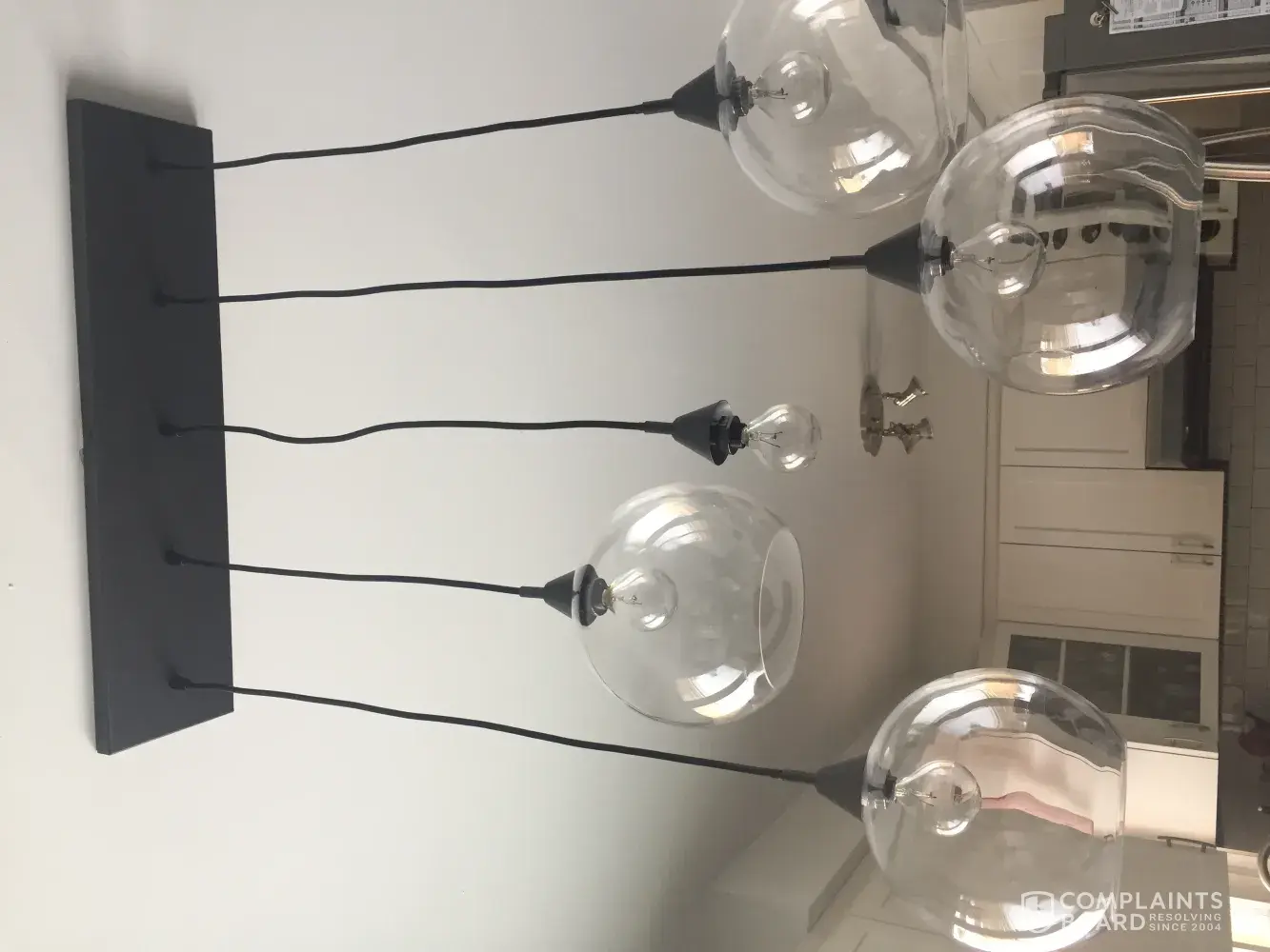 E4X001047463319. The product arrived with one of the globes smashed (see photo). I urgently need a new globe as I am selling my house and the fixture looks ridiculous without all the globes :(