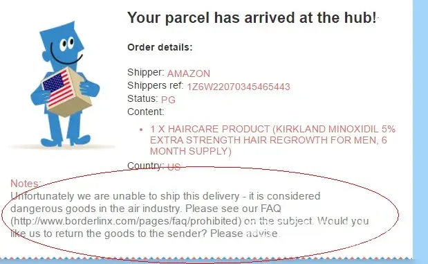 Online simulator says the Haircare products can be shipped but then once my product arrived it cannot, it became a prohibited item.